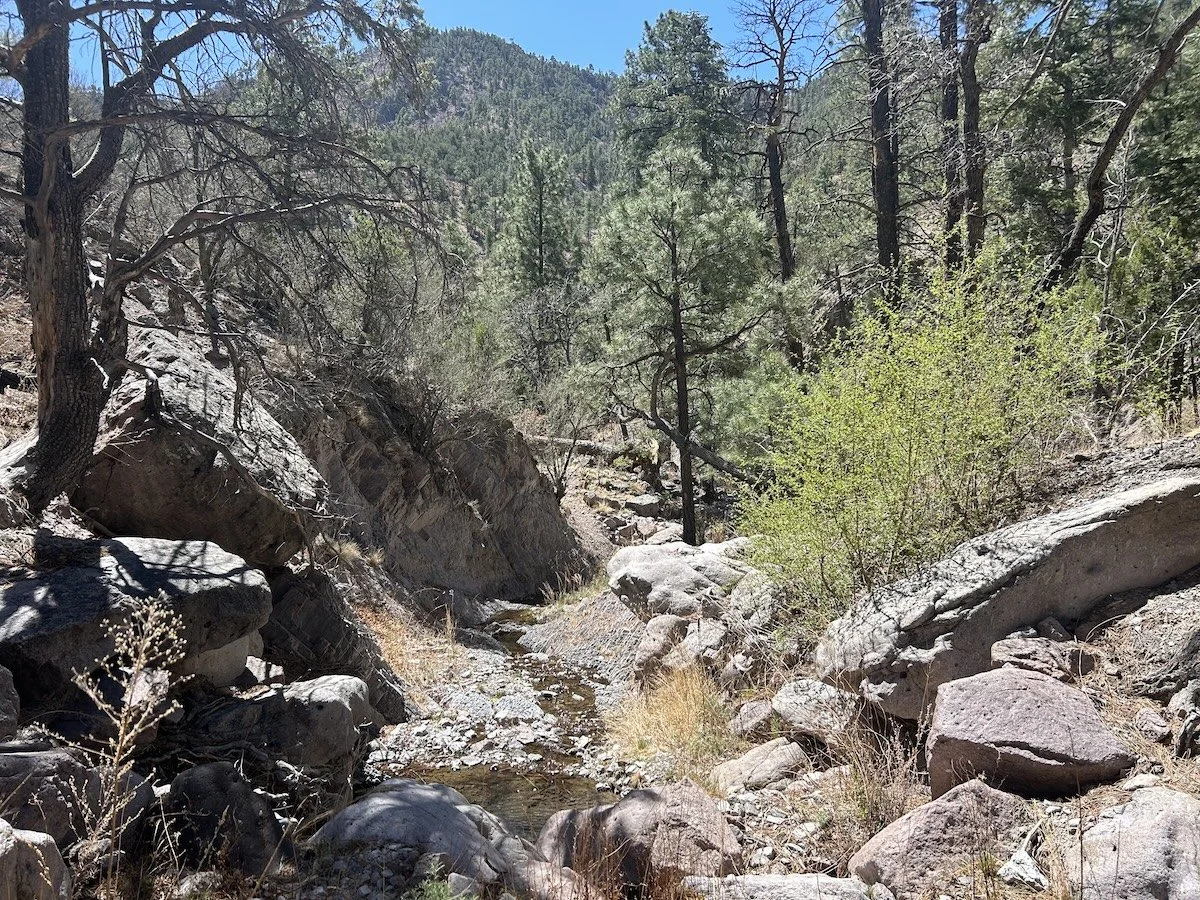 I was nervous about hiking through the San Mateo Mountains. I’d seen them as I walked into Monticello, looming, rocky, forested, and worried about the state of the trails. Would they be well used or used at all? Had there been fires and subsequent erosion? Would the going be agonizingly slow?