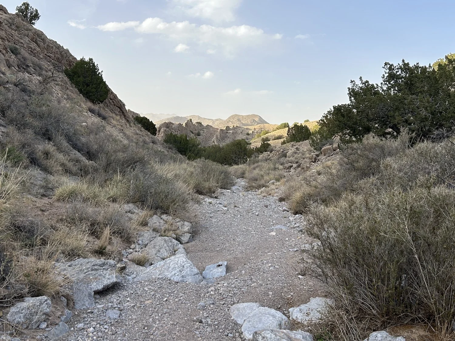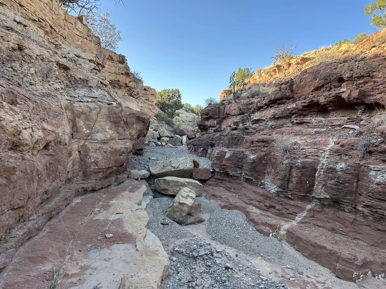 The walk down the wash that would eventually join Abo Arroyo was slow going at first, but eventually opened up into a gravel bottomed canyon that was quite beautiful. My mood improved with every step.
