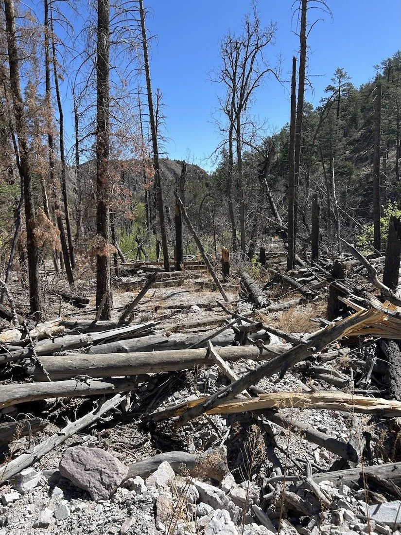 I didn’t take any pictures of the erosion, and I wish I had. I tend to not pull my phone out when I am scared, and it’s safe to say I was really scared. There is something so unsettling about walking through swaths of mass destruction in the middle of nowhere. The carnage above Potato Canyon was a display of the effects of climate change, the devastation of forest fires and subsequent flooding; it was a haunting experience to contend with.