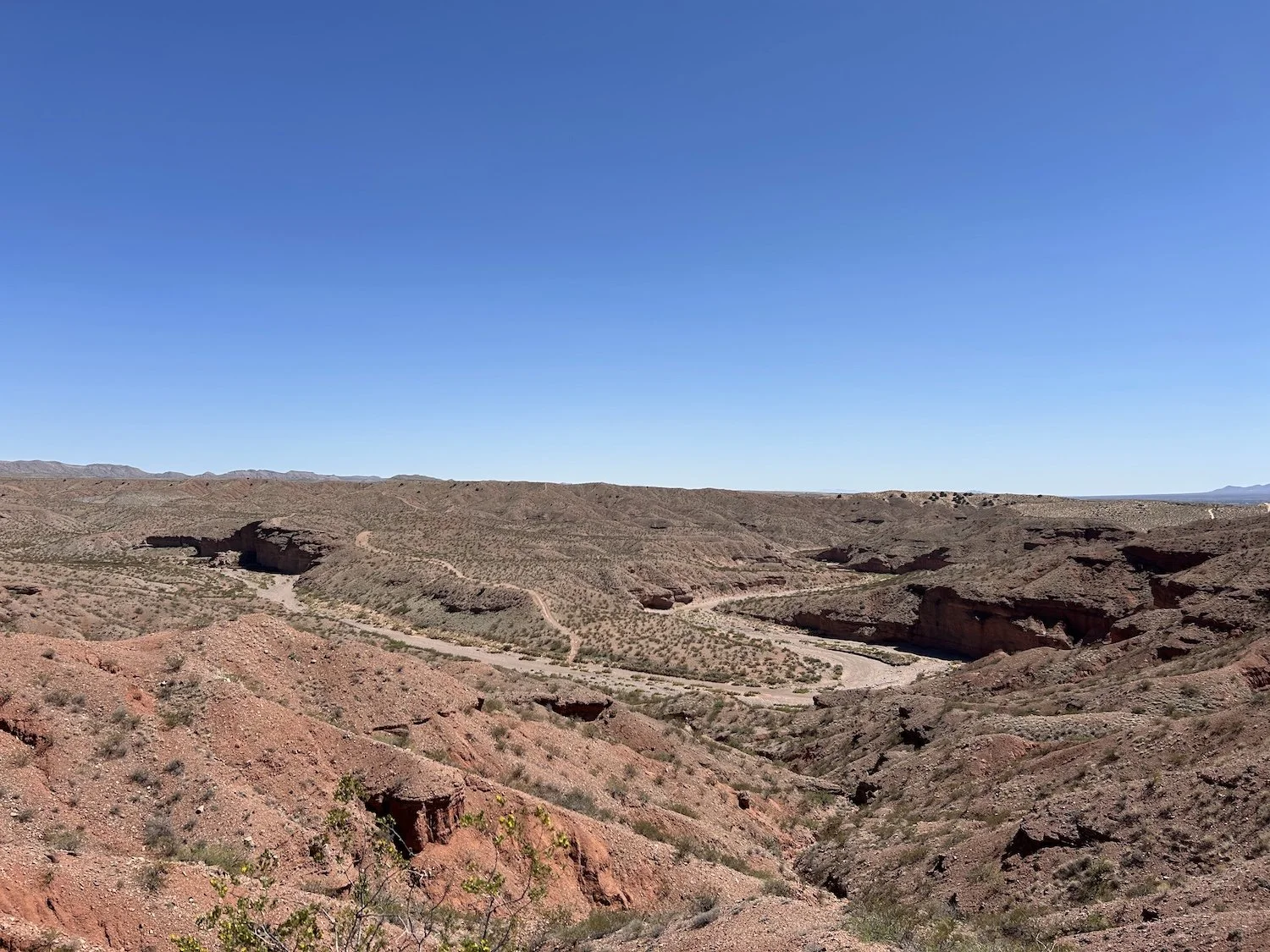 The extreme heat and exposure, a leaking water bladder, and the sheer nothingness of the terrain directly out of town didn’t exactly help my morale, nor did passing a questionable looking muck bucket full of something that smelled an awful lot like a corpse down by the Rio Grande. The views and smells improved, though, when I reached the top of Johnson Hill and took in the landscape. I had dipped into the Chihuahua Desert, which over all maintains a higher elevation than the Sonoran Desert, has colder winters and is quite a bit drier.