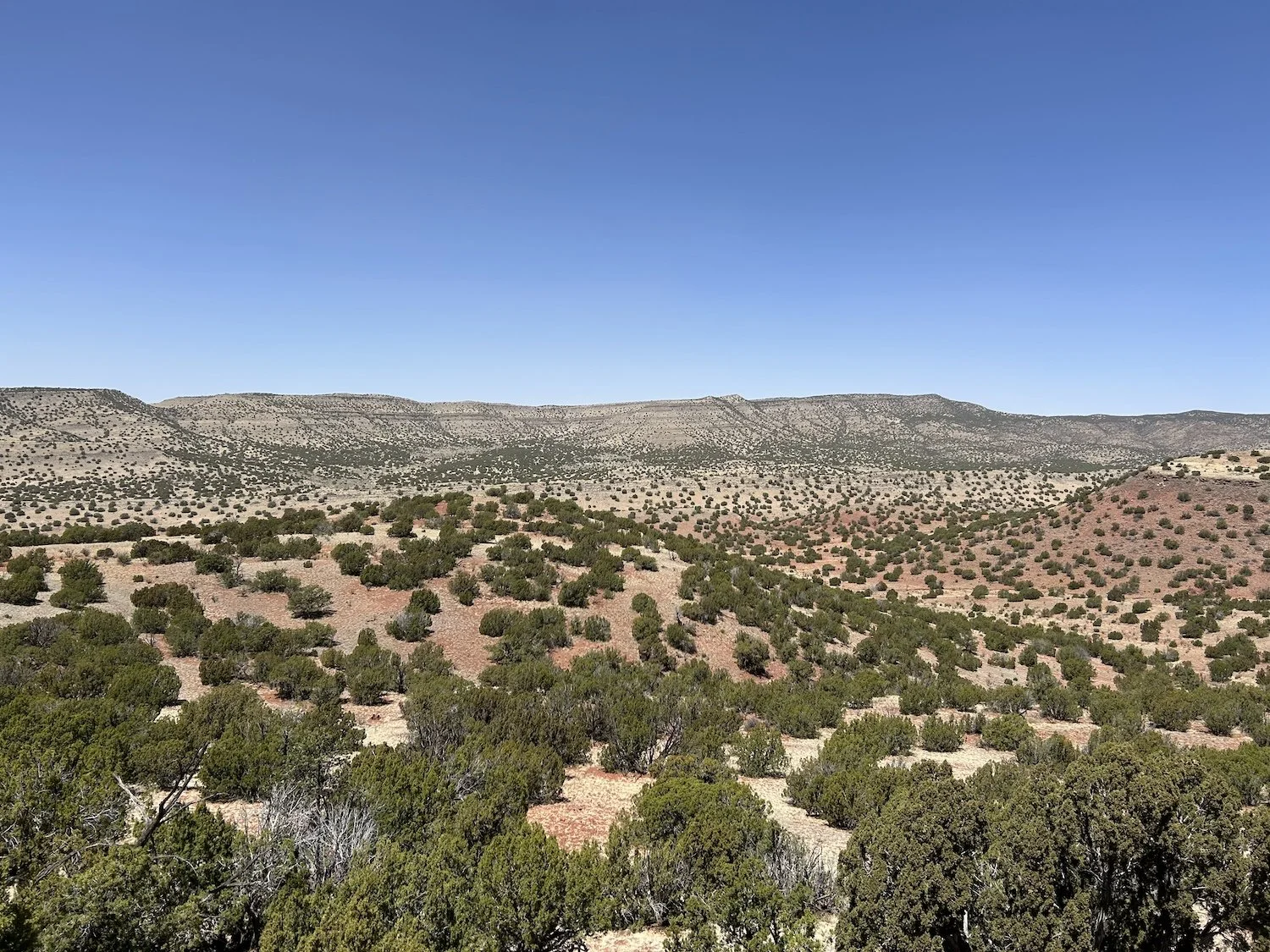 The second half of my day was equally as slow but for different reasons—I was tired, for one, and about to start my period. While I’d made it through the worst of the burn scar, I still had to hike cross country up a wash, across some nebulous, juniper studded hills, and then up to Grassy Lookout. Gaia showed a trail to the summit of the Lookout, but alas, there was none, so I hiked directly uphill and goshdarnitall it was steep.