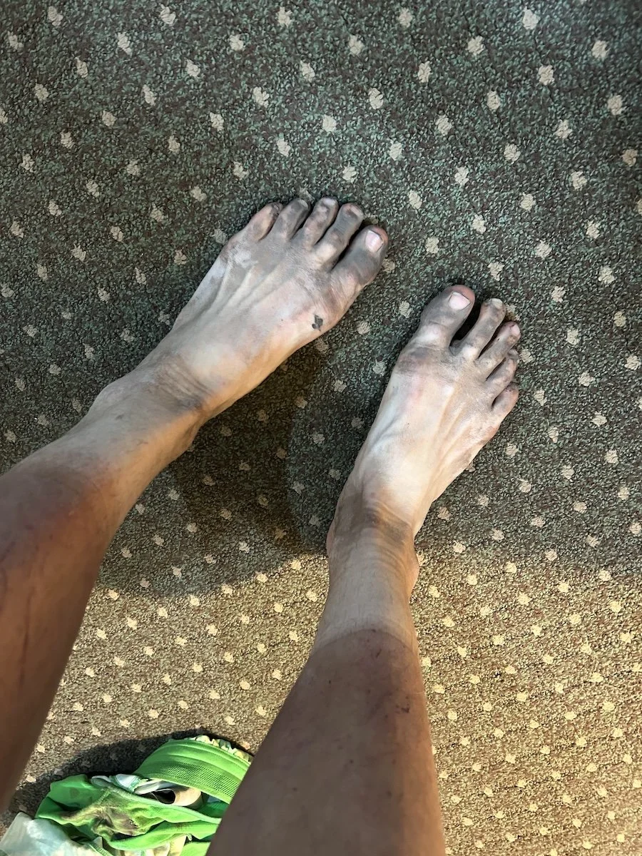 It had been a hot, exposed walk into town and I booked it, flying over chunky forest service roads, through a heinous wash that was full of deep sand, shifting river stones, and sharp vegetation, off-trail, of course, and I definitely forgot to drink water.