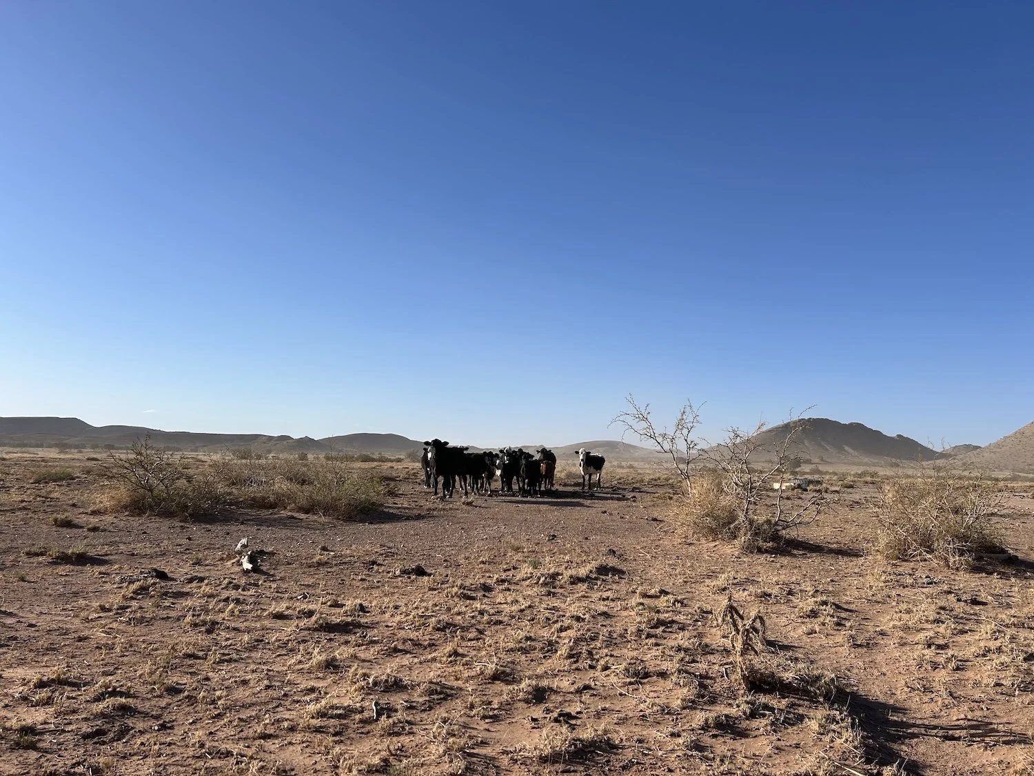 Mercifully there was water. I knew it before I saw the shine because I heard birds singing and stepped in a semi-fresh cow pie. I borrowed some time at the tire trough from the cows and then walked a distance away to make a bean and rice burrito. It wasn’t until after I’d eaten the whole thing that I realized I’d set my stove up not 10 feet from a very dead, very rotten cow. I didn’t even care.