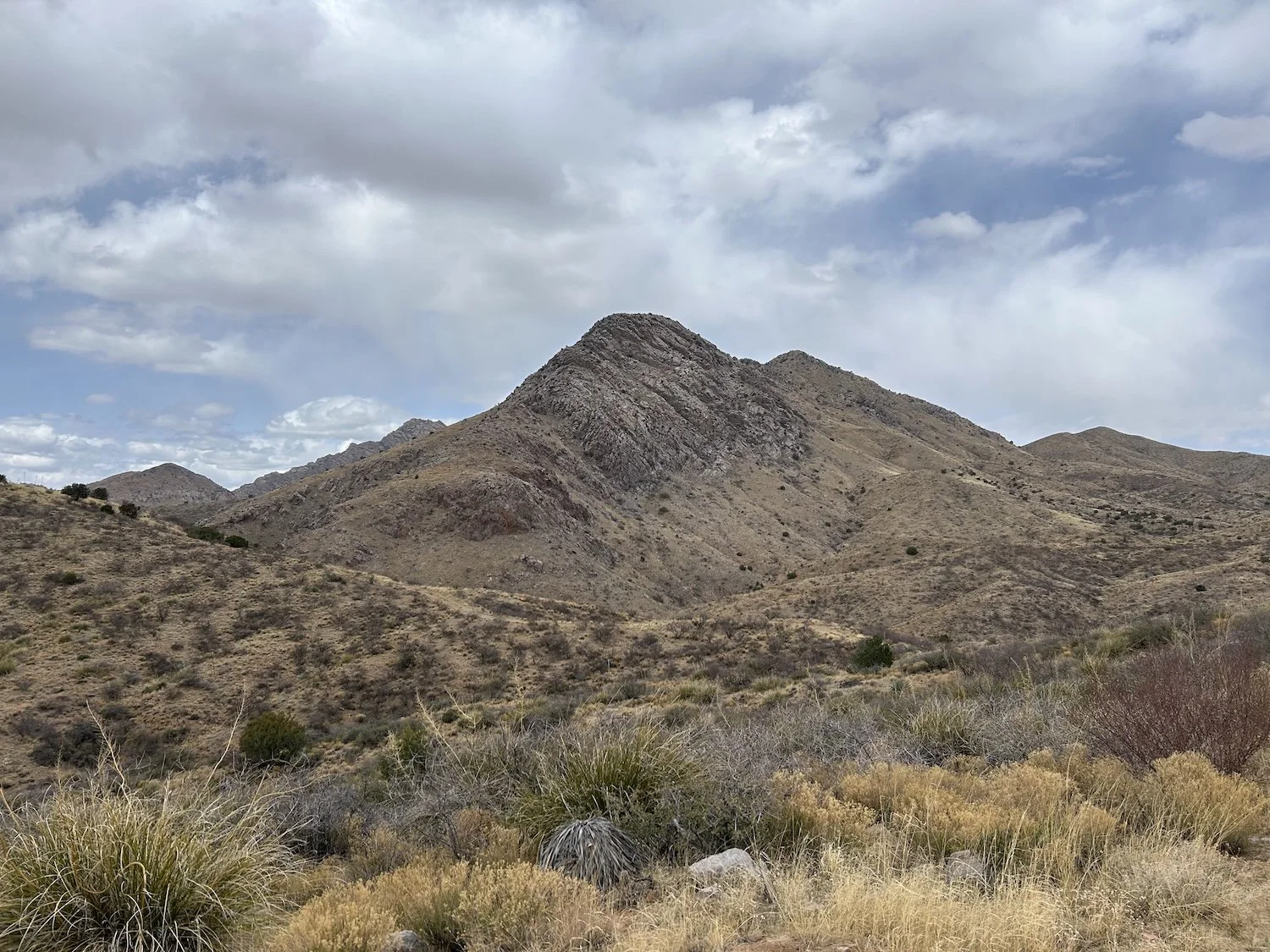 Beyond Turkey Creek, I climbed on 4X4 roads into increasingly dry, desert conditions. When I topped out on a ridge, I saw the Santa Teresas and knew them instantly, as they were the most prominent range in view. I felt suddenly confident; I’d navigated the alternate route which was little traveled and without a trail for much of it. I could handle whatever came next.