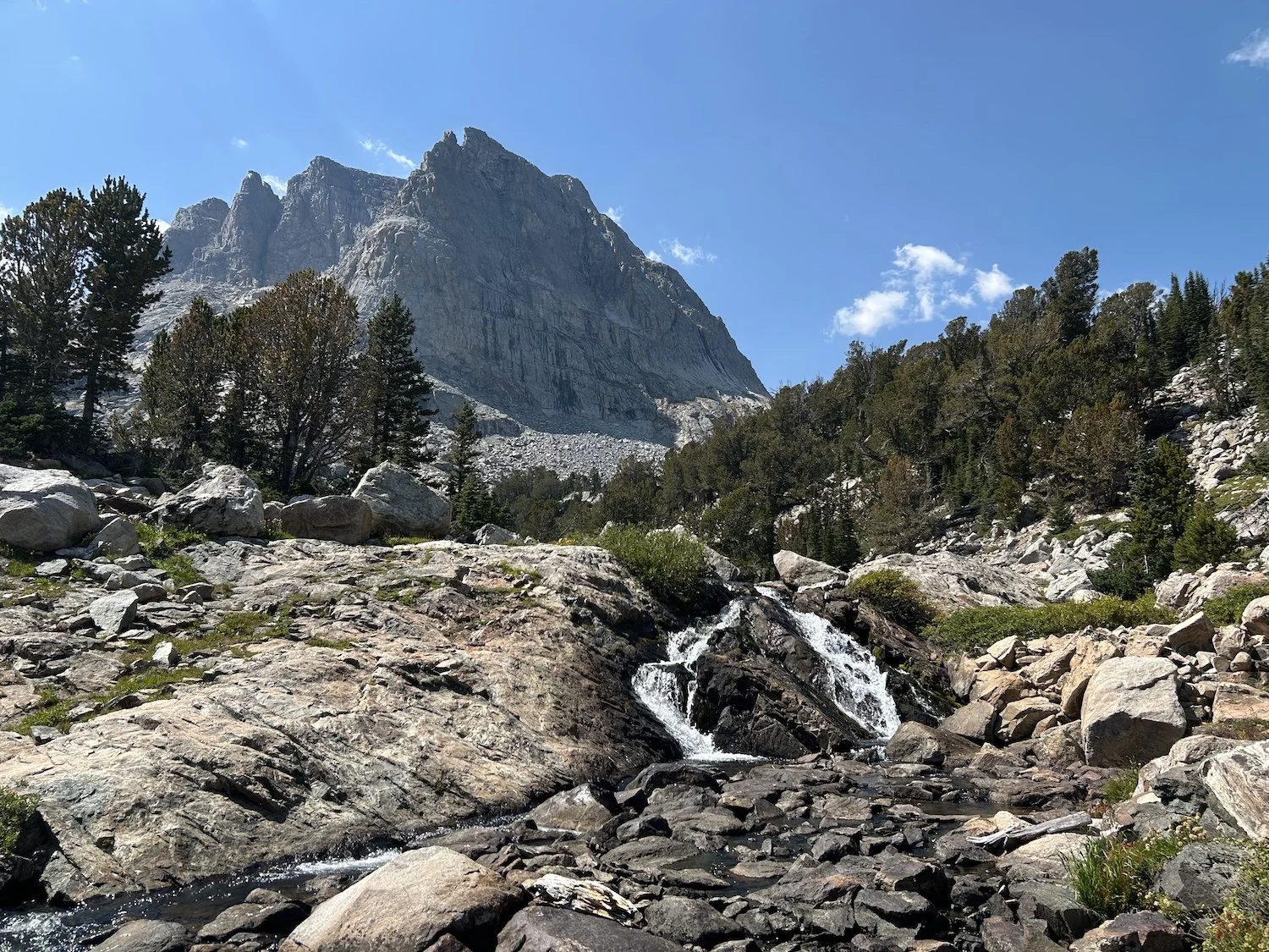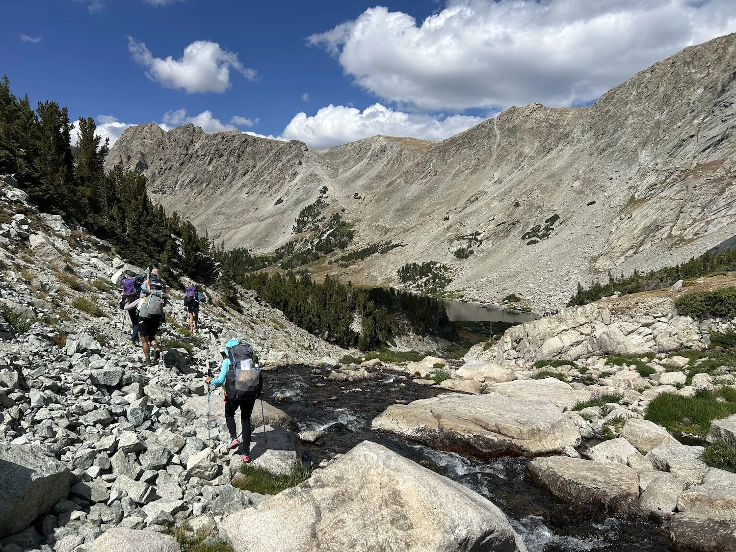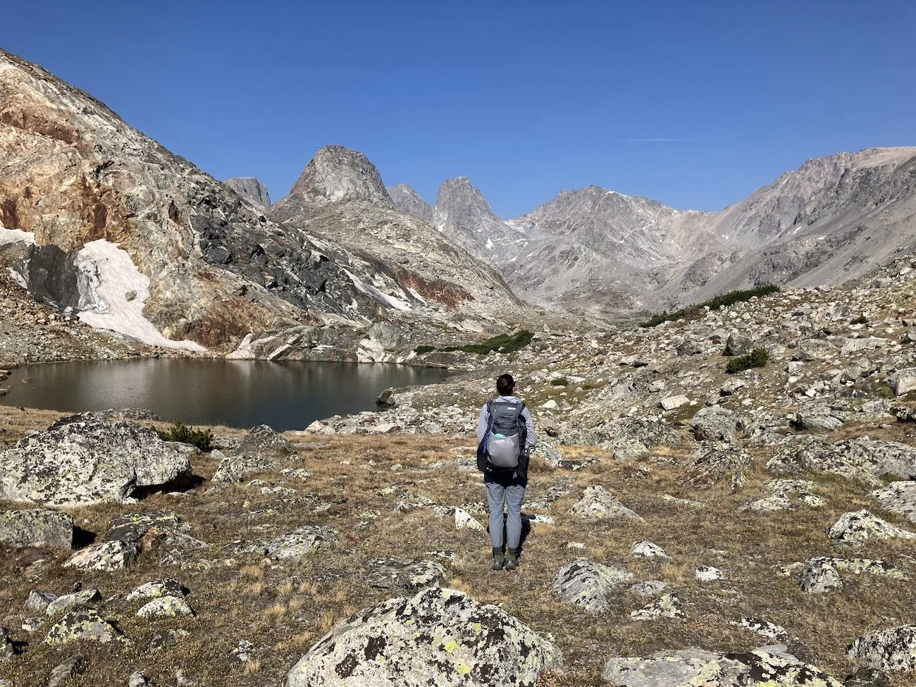 Lynn Froetscher and I hiked Skurka’s 100 mile high route across the backbone of the Wind River Range in WY over the course of 7 days. We had uncommonly perfect weather and only dealt with smoke from nearby fires on our final 2 days. We stayed true to Skurka’s route except on two occasions—we took TX Pass instead of NY Pass and took the Dixon Camp Lakes Alt around Douglas Pass.